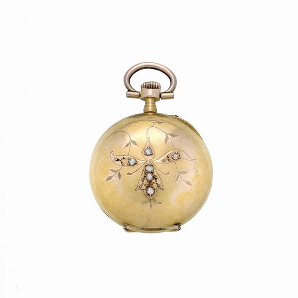 Piccolo orologio da taschino in oro giallo e microperle, Saphir