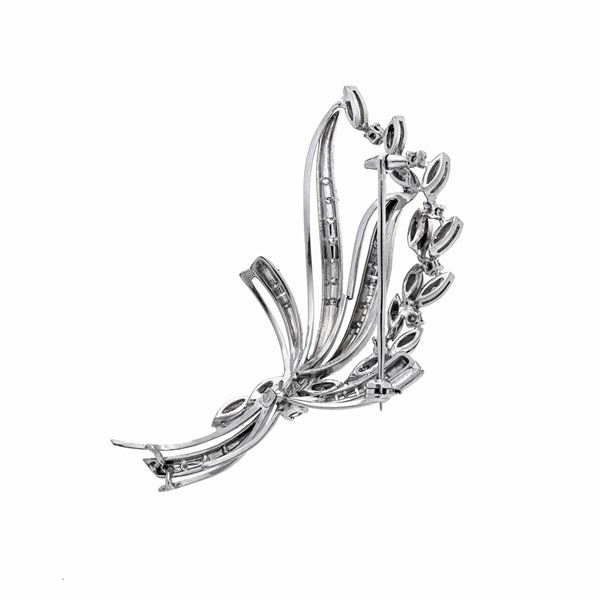 Spilla floreale in oro bianco e diamanti