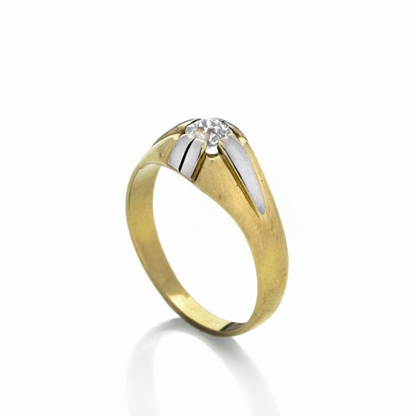Anello da uomo in oro giallo 18 kt, oro bianco e diamante