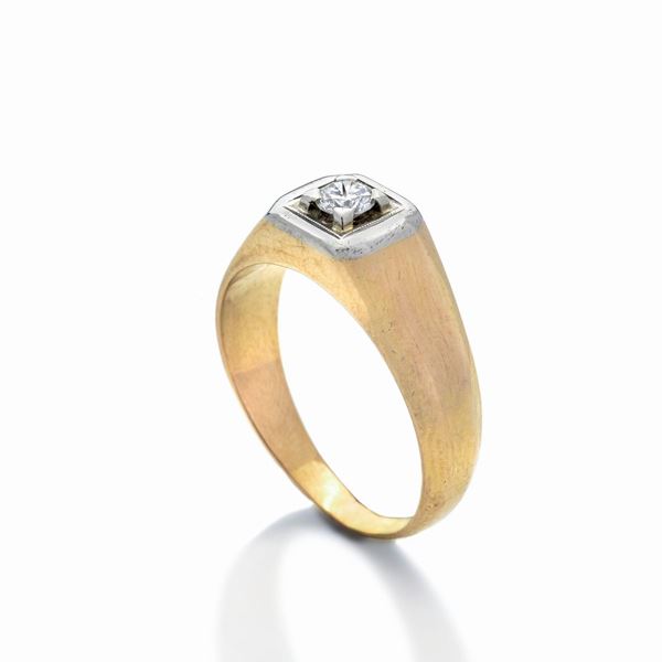 Anello da uomo in oro giallo 18 kt, oro bianco e diamante
