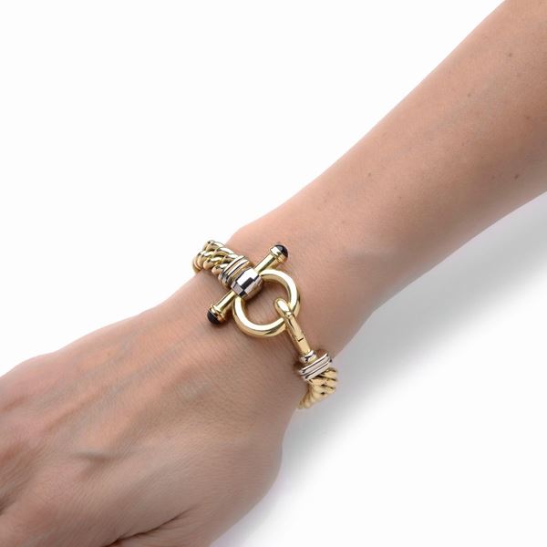 Bracciale in oro giallo e oro bianco 18k e quarzi colorati