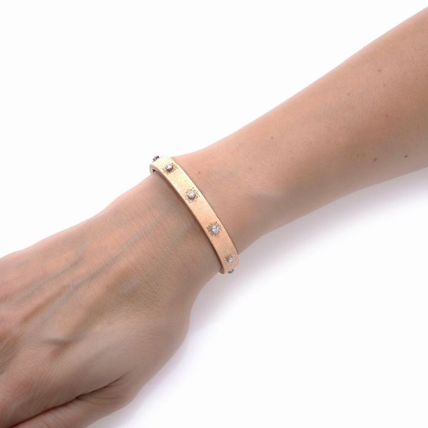 Buccellati, bracciale in oro rosa e bianco 18k e diamanti