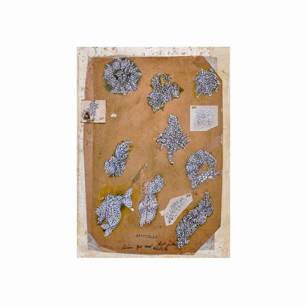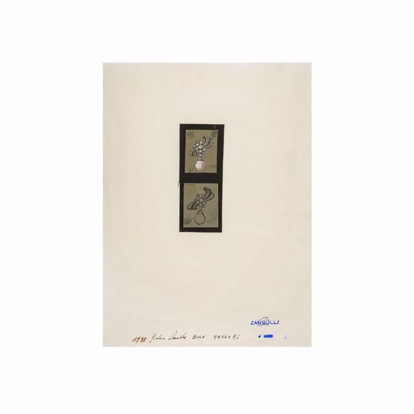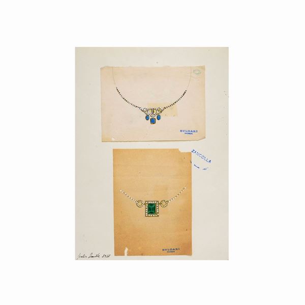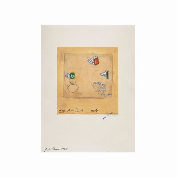 varieDESCRIZIONE: lotto di sette preparatori per gioielli eseguiti da Giulio Zancolla, disegnatore e orefice per Bulgari negli anni Trenta e Quaranta, alcuni dei quali recanti il timbro Bulgari