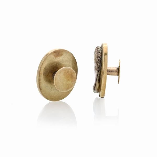 Paio di bottoni in oro giallo 18k e Cammeo in pietra dura