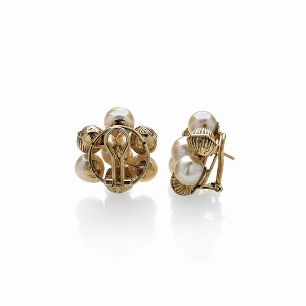 Paio di orecchini in oro giallo 18k e perle coltivate