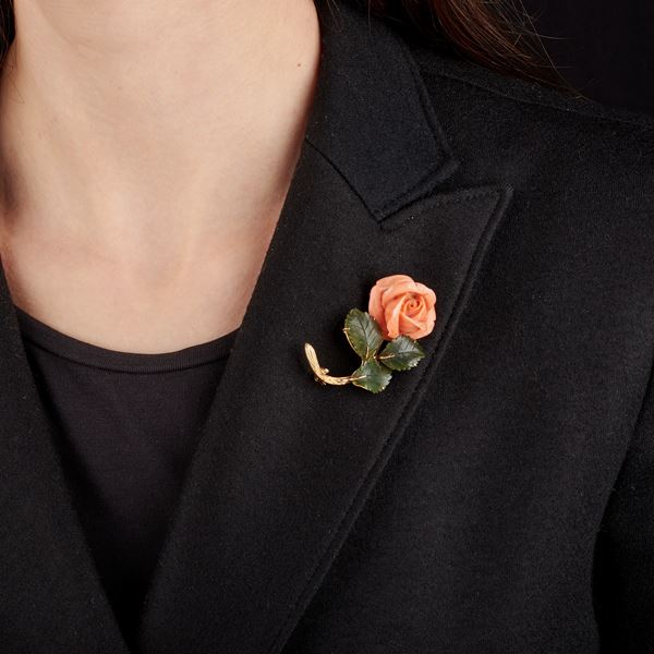 Paio di orecchini a ventaglio in oro giallo, argento, diamanti, quarzo citrino e pietre rosse