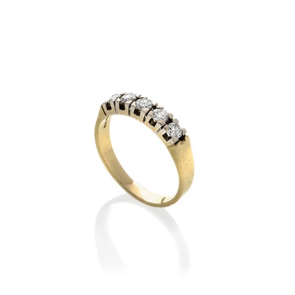 MISURA 21Anello con cinque diamanti taglio brillante per ct 0.50 circa, reca marchio 750, gr 6.9