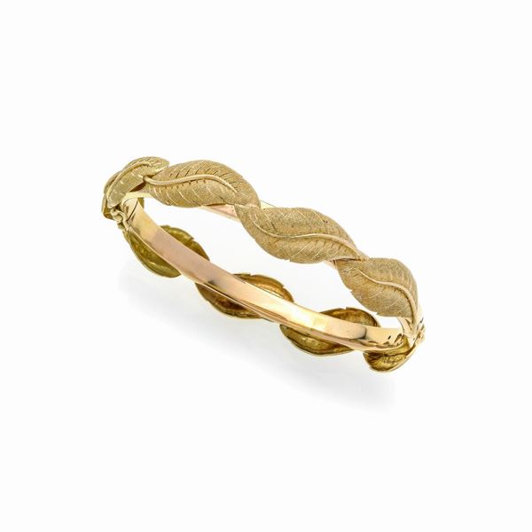 chiuso diametro cm 6.5Bracciale rigido con foglie satinate e incise, reca marchio 750, gr 33.7