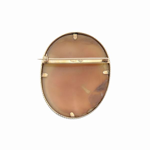 Cammeo in conchiglia e oro giallo Leda e il Cigno