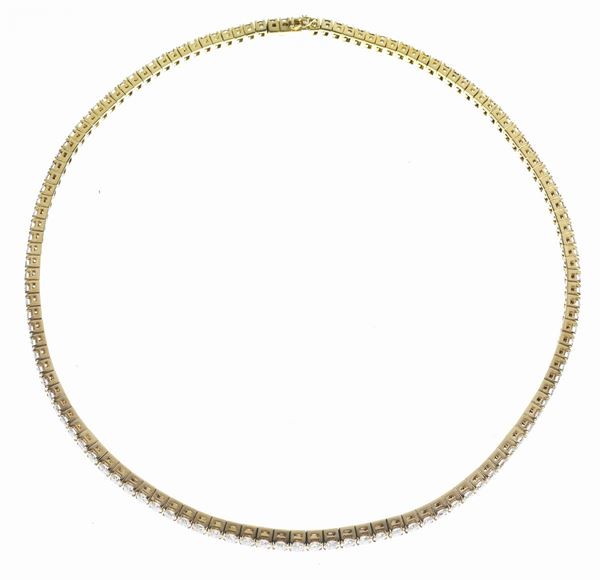 Collana tennis in oro giallo 18 kt e diamanti taglio brillante