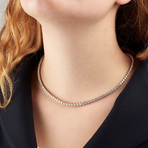 lunghezza cm 41Collana tennis con diamanti taglio brillante per ct 9, colore G-H, VS. gr 36.3