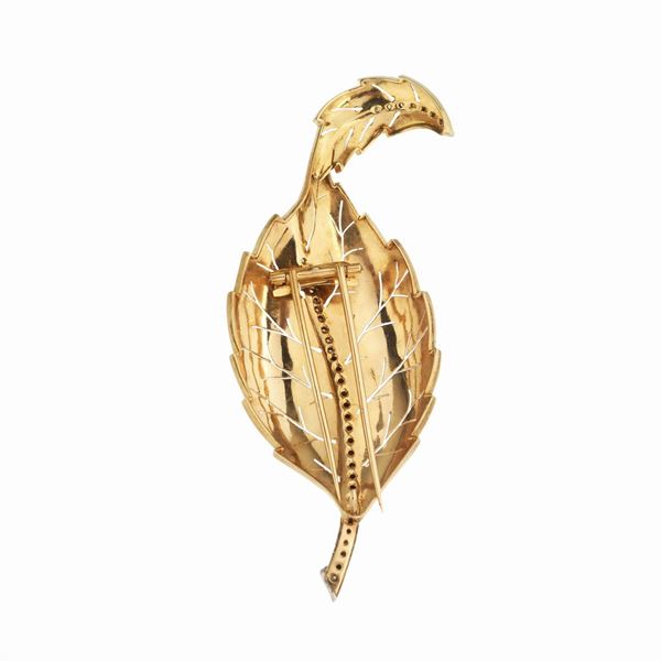 Grande spilla Foglia in oro rosa, oro bianco 18 kt e diamanti