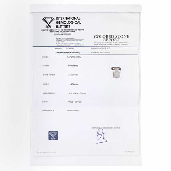La morganite è corredata di certificato IGI num. R1D88091 del 19.04.2017