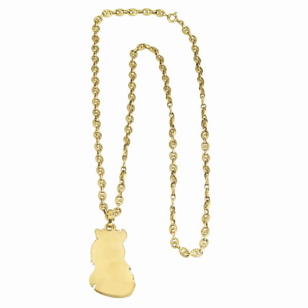 Pendente cm 2.5 x 5, catena aperta cm 74Il pendente e la catena recano il marchio 750, gr 78.5