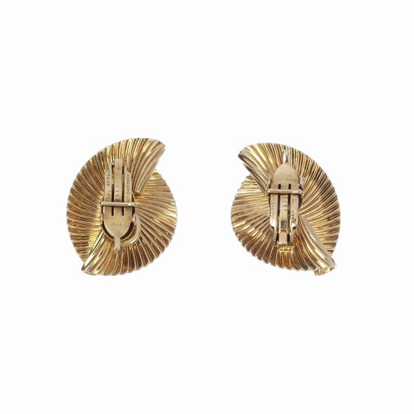 cm 2.1 x 3.2 hIl paio di orecchini è firmato Tiffany & Co, reca inciso il numero pat. 2423903, recano il marchio 14 kt, gr 14