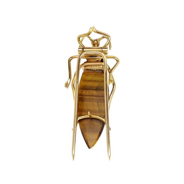 Clip animalier Grillo in oro giallo 18 kt e occhio di tigre