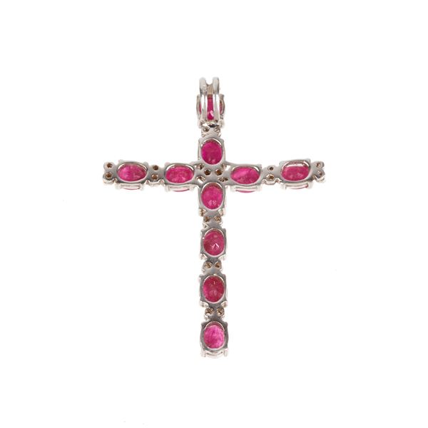 Croce in oro bianco 18 kt, diamanti e rubini