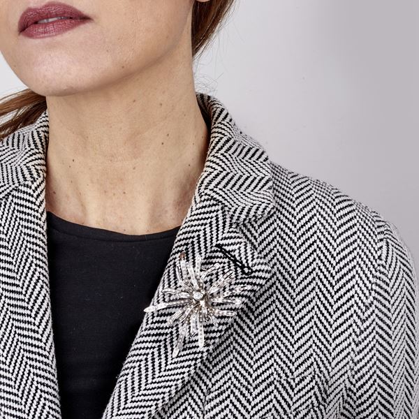 Grande Clip Anemone in oro bianco 18 kt e diamanti
