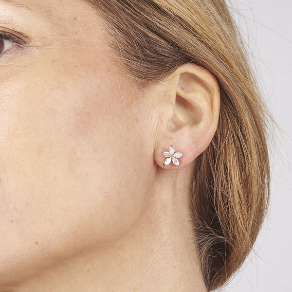Paio di orecchini a fiore in oro bianco 18 kt e diamanti