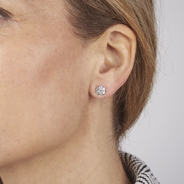Paio di orecchini a margherita in oro bianco 18 kt e diamanti