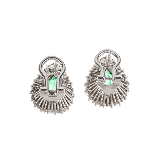 Paio di orecchini in oro bianco e oro giallo 18 kt, diamanti e smeraldi