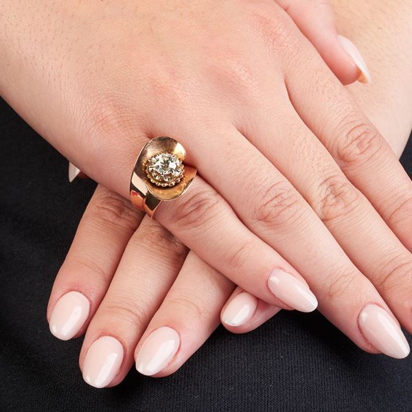 Anello in oro giallo 18 krt e diamanti