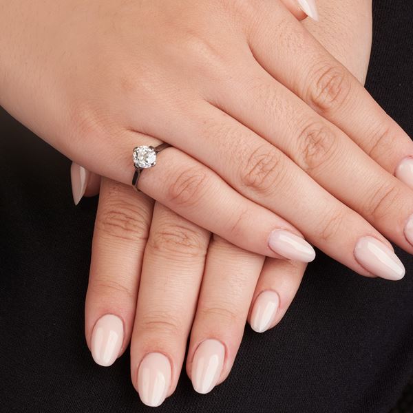 Anello solitario in oro bianco 18 kt e diamante taglio vecchio