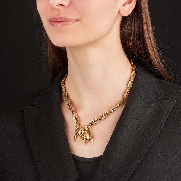 Girocollo Serpente in oro giallo 18 kt e pietre rosse