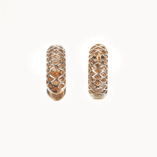 Paio di orecchini a cerchio in oro giallo 18 kt e diamanti