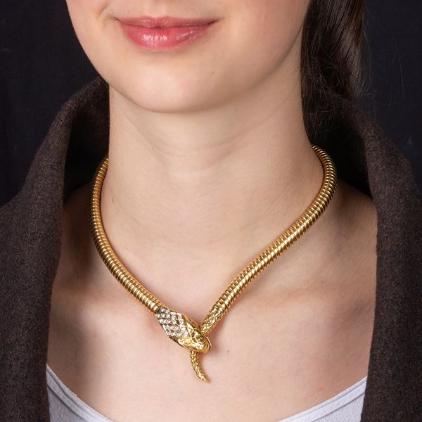 Girocollo Serpente in oro giallo 18 kt e diamanti