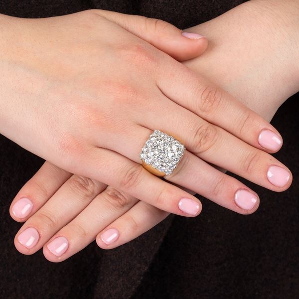 Importante anello a fascia in oro giallo 18 kt e diamanti