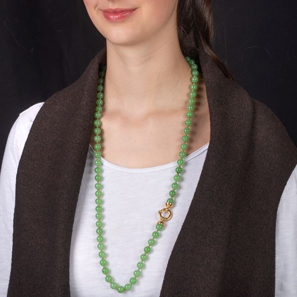 Lunga collana in oro giallo 18 kt e calcedonio verde