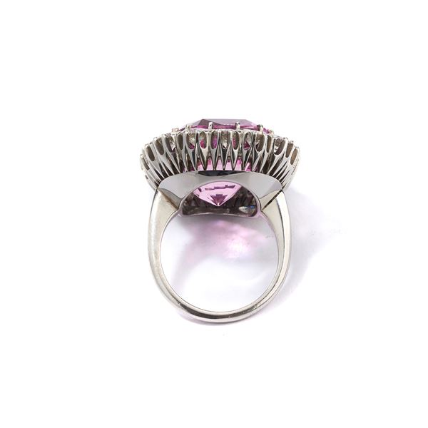 Importante anello a margherita in oro bianco 18 kt, diamanti e grande Zaffiro Rosa Violaceo Naturale