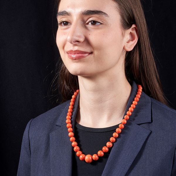 Collana in boule corallo rosa degradè e oro giallo 18 kt
