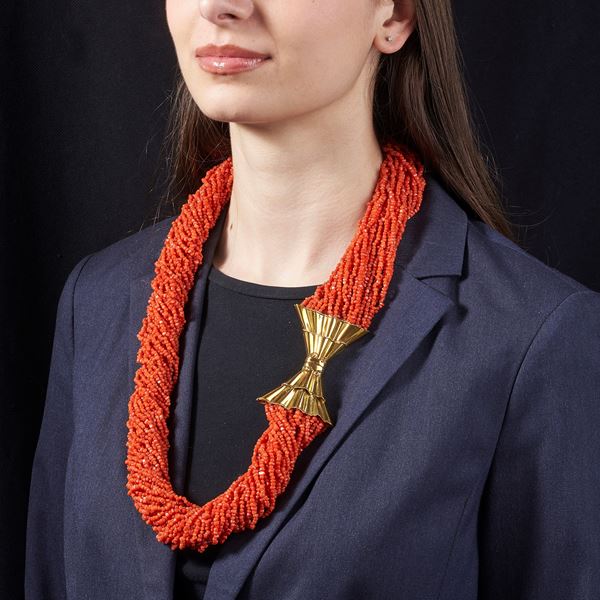 Grande collana millefili in corallo rosso e oro giallo 18 kt