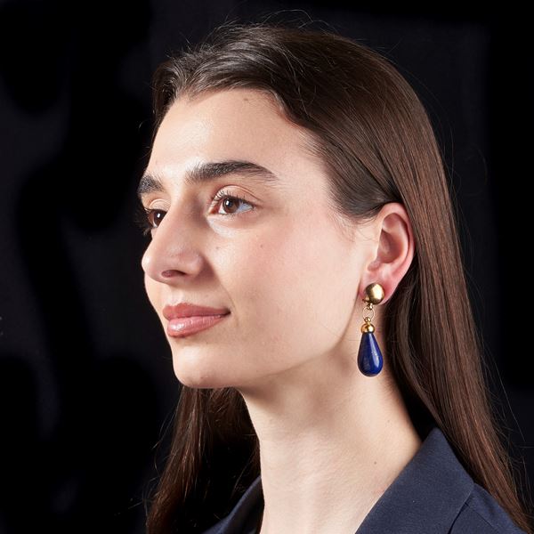 Paio di orecchini pendenti in oro giallo 18 kt e lapislazzuli