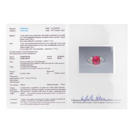 Anello in oro bianco 18 kt, diamanti e rubino Birmano Naturale