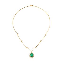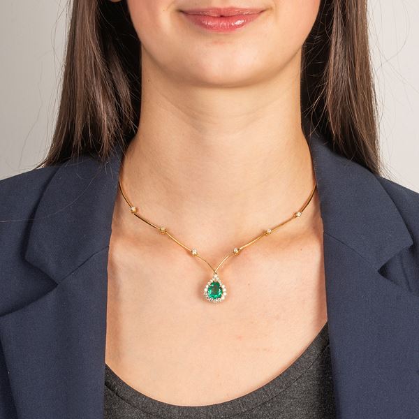 Collier semirigido in oro giallo 18 kt, diamanti e smeraldo