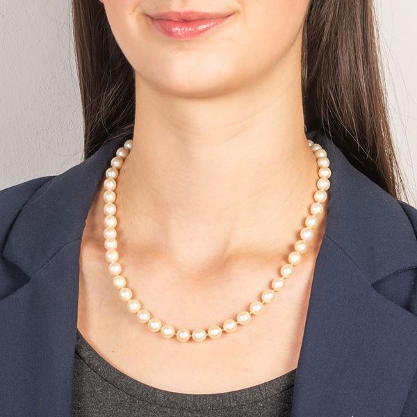 Collana aperta lunghezza cm 48.5Perle diametro da mm 7 a 8, lieve difetto alla chiusura, gr 44.8