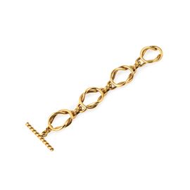 Grande bracciale con staffe intrecciate alternate a maglie a cordonetto in oro giallo 18 kt