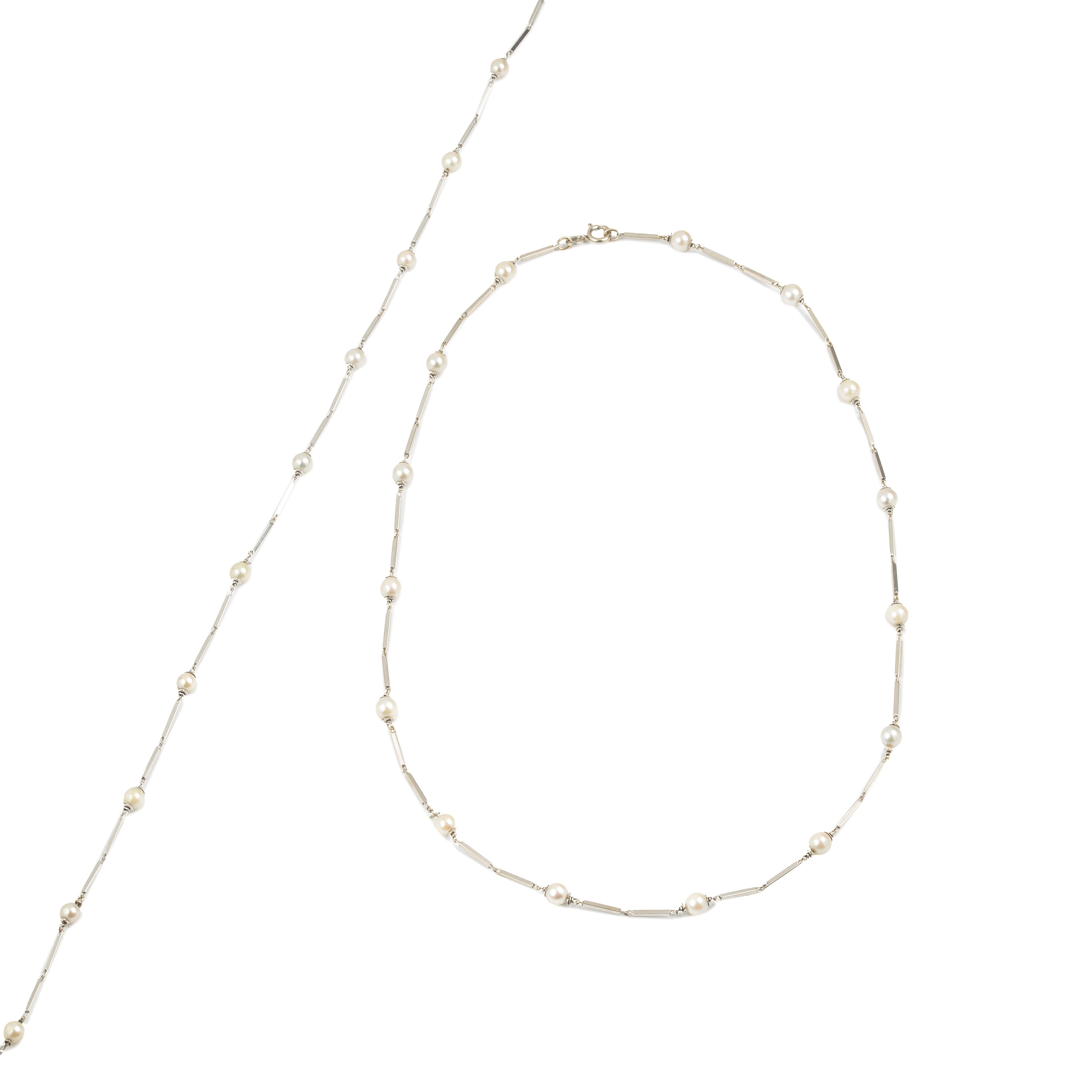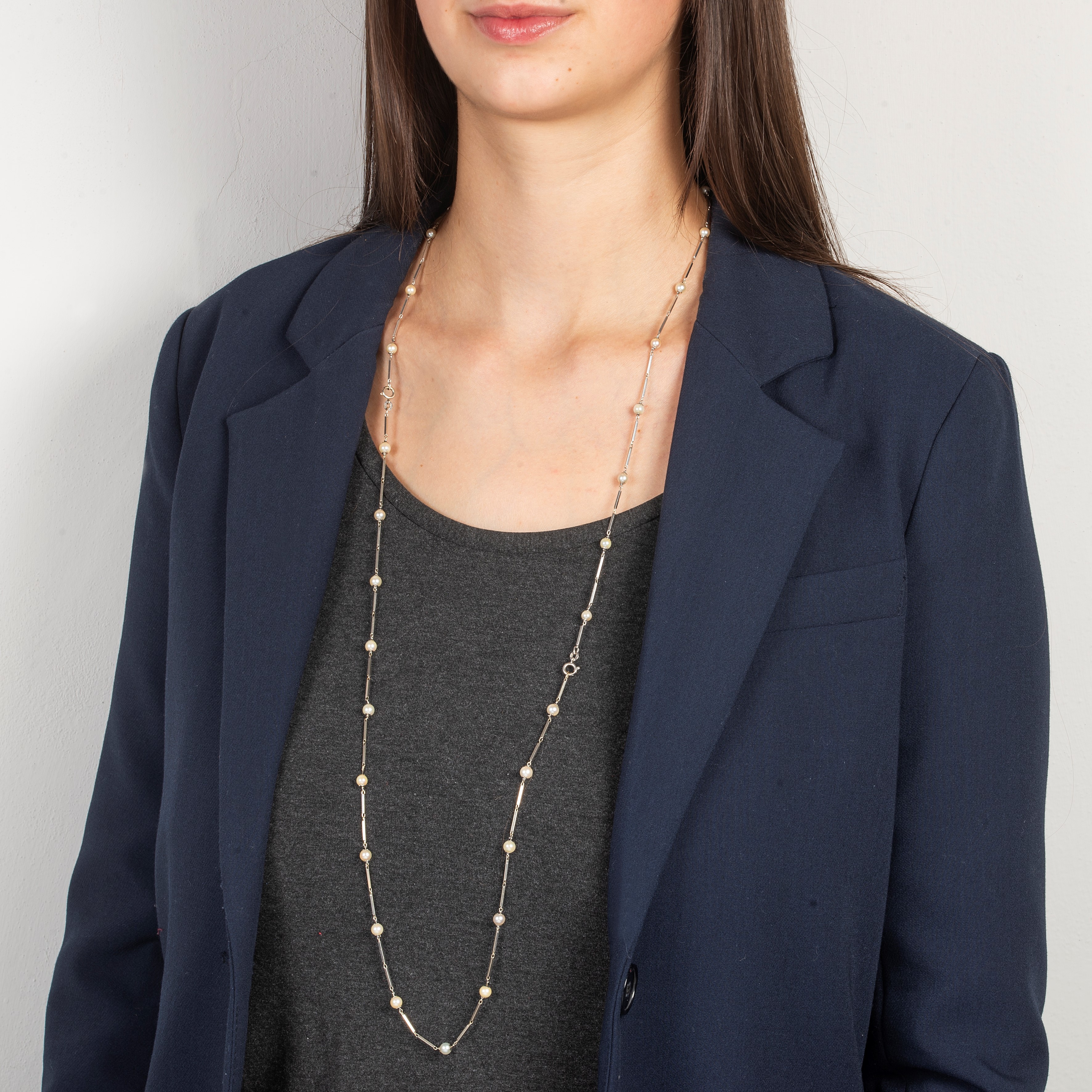 Lunga collana in oro bianco 18 kt e perle coltivate