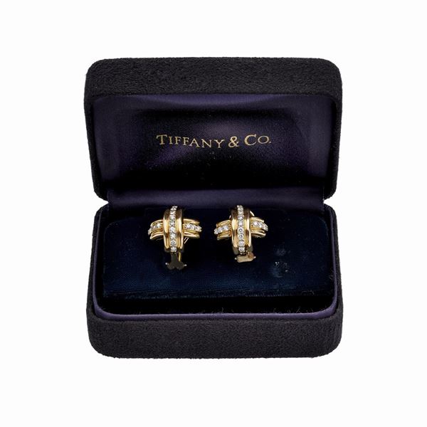 MATERIAL: yellow gold and diamonds DESCRIPTION: pair of knot earrings embellished with brilliant-cut diamonds, signed & T Co., bear the mark 750, accompanied with original box SIZE: 1.5x1.5 cm WEIGHT: 1.50 ct diamonds, 10.4 g