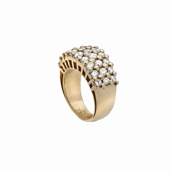 MATERIAL: yellow gold, diamonds DESCRIPTION: ring with three lines of diamonds MEASURE:7 WEIGHT: diamond ct 2.20, gr 12.2