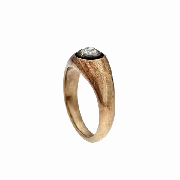 MATERIAL: rose gold, silver and diamond DESCRIPTION: ring made like a slightly rounded band with the old-cut diamond SIZE: 8 WEIGHT: 0:50 ct diamond, 8.9 g