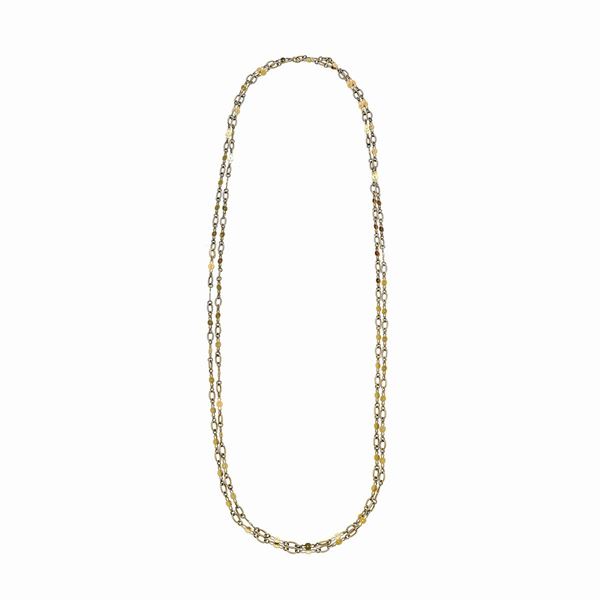 MATERIAL: yellow gold DESCRIPTION: long chain made with fancy alternating meshes with oval links MEASURES: closed 77.5 cm WEIGHT: 21.1 gr