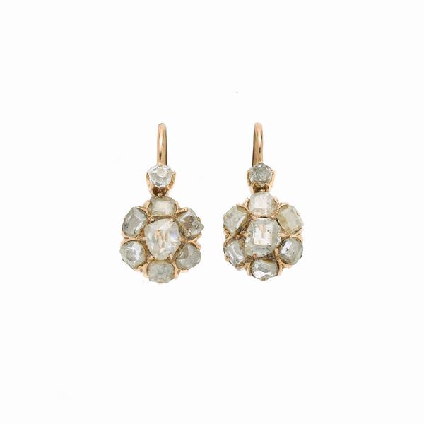 MATERIAL: yellow gold and diamond roses DESCRIPTION: pair of gold-plated earrings, each entirely embellished with diamond roses MEASURES: 0.8x1.5h cm WEIGHT: 2.1 gr