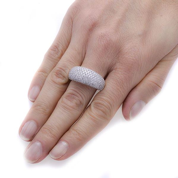 MATERIAL: white gold and diamonds DESCRIPTION: slightly rounded band ring embellished with pavè of brilliants, signed Preziosismi, bears the mark 750 MEASURES: ring 9.75 WEIGHT: 16.1 g
