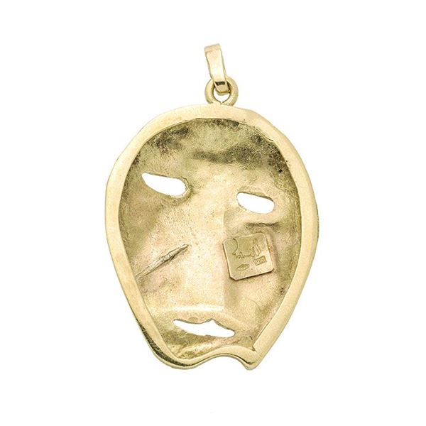 MATERIAL: yellow gold DESCRIPTION: large pendant made like a male face inspired by African masks, signed Passerini, bears the Oropa and 750 marks MEASURES: 3.7x 4.5h cm WEIGHT: 18.7 g