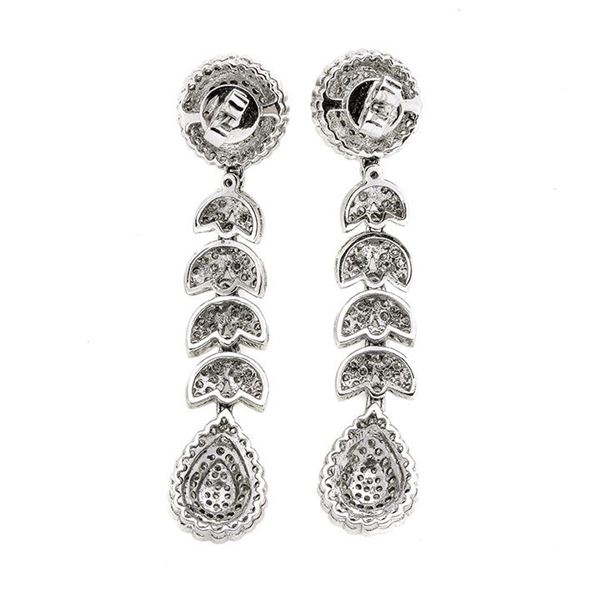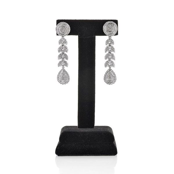 MATERIAL: white gold and diamonds DESCRIPTION: pair of floral-inspired pendant earrings each made with a button clip with a laurel wreath and drop pendant entirely embellished with diamond pavé MEASURES: 1.5x 5.5h cm WEIGHT: 18.2 g