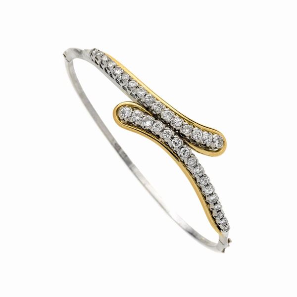 internal diameter 16 cmDESCRIPTION: circle bracelet with contrariè setting decorated with two lines of old-cut diamonds placed in gradations, defects on the clasp WEIGHT: diamonds approx. 1.20 ct, 15.9 gr